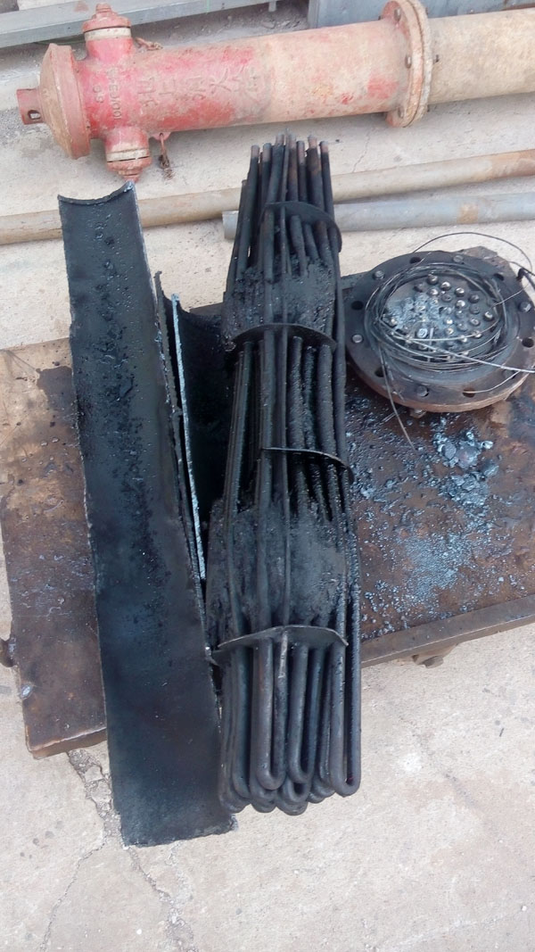 下列為排氣閥門誤操作長期打開后的爐膽剖開圖片: